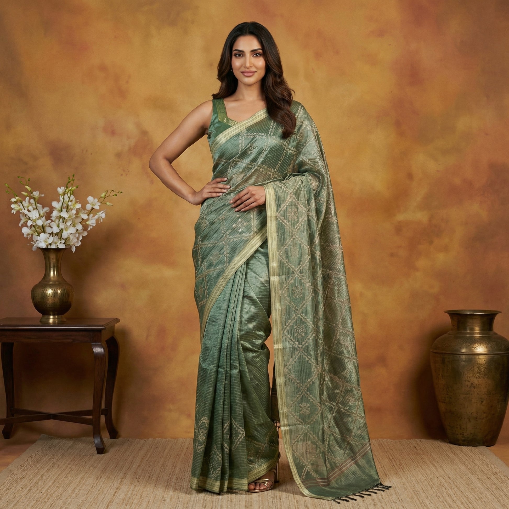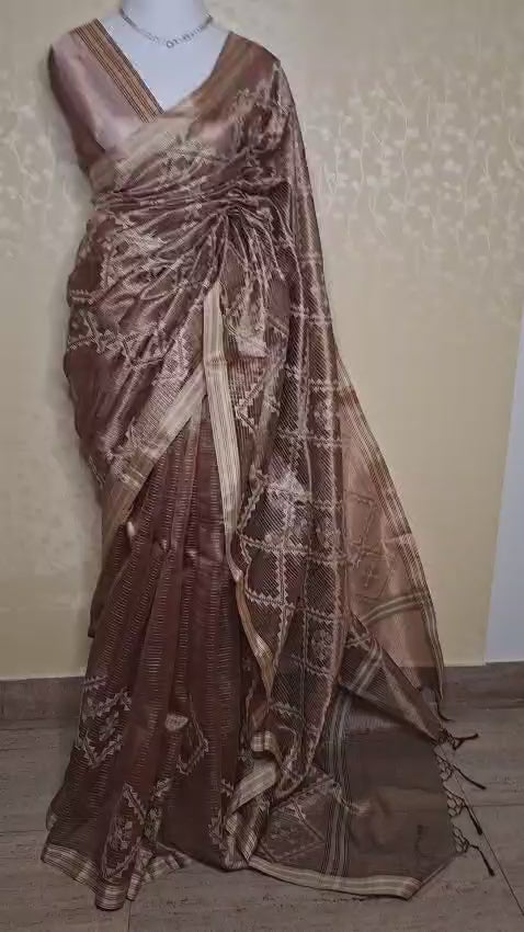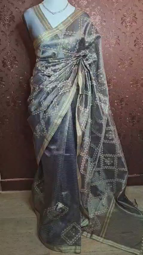 Elegant and richly textured, this tissue silk saree is a beautiful blend of luminosity and heritage-inspired design.