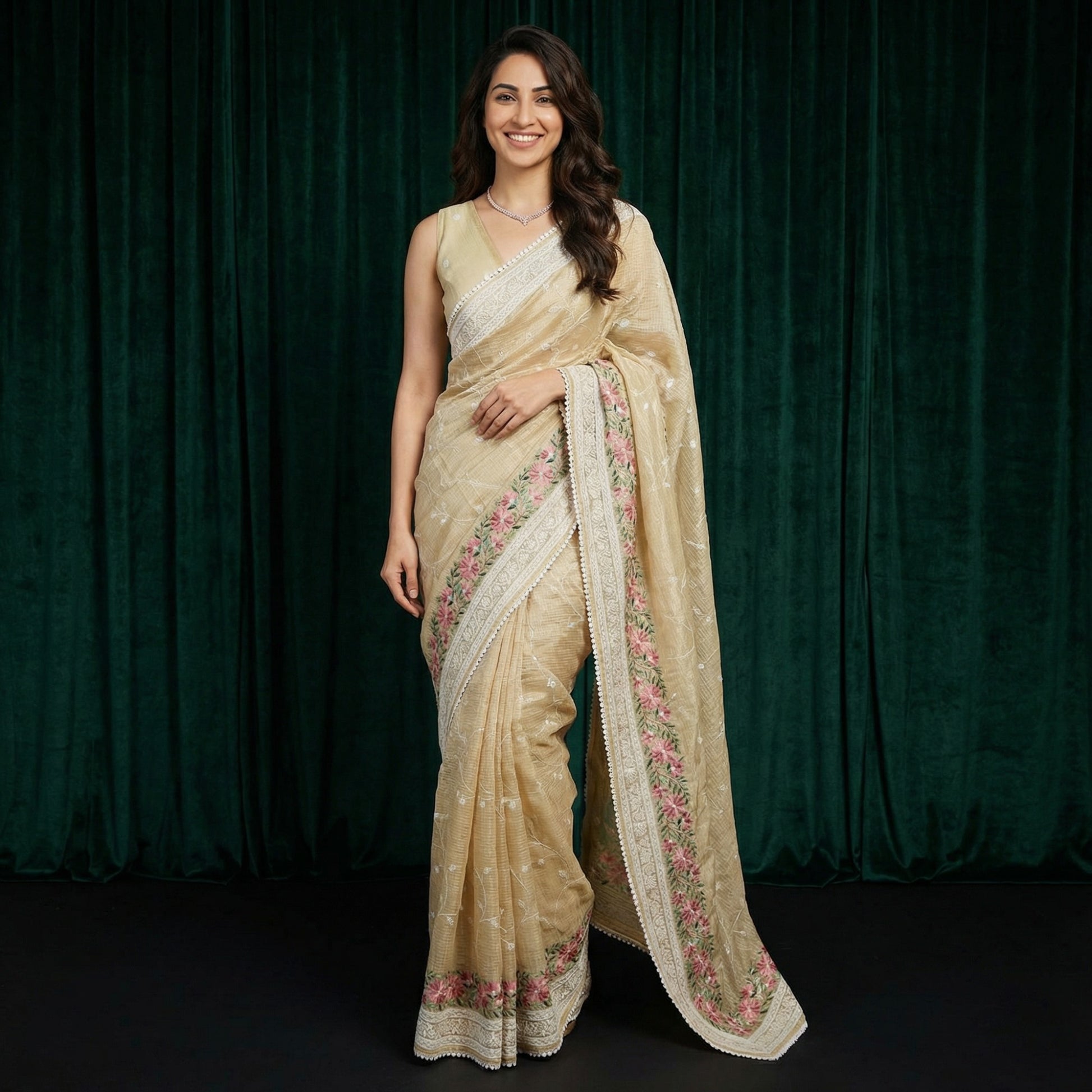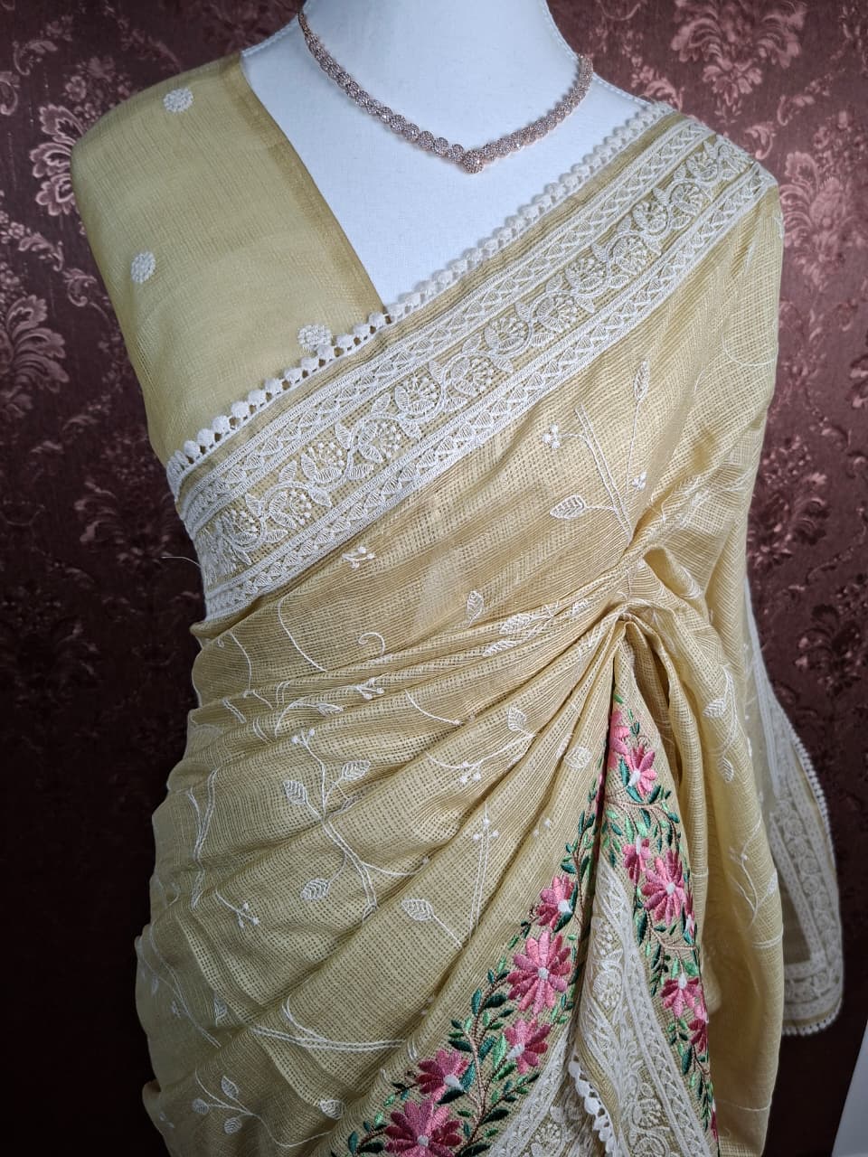 • Finish: Embroidered floral pallu