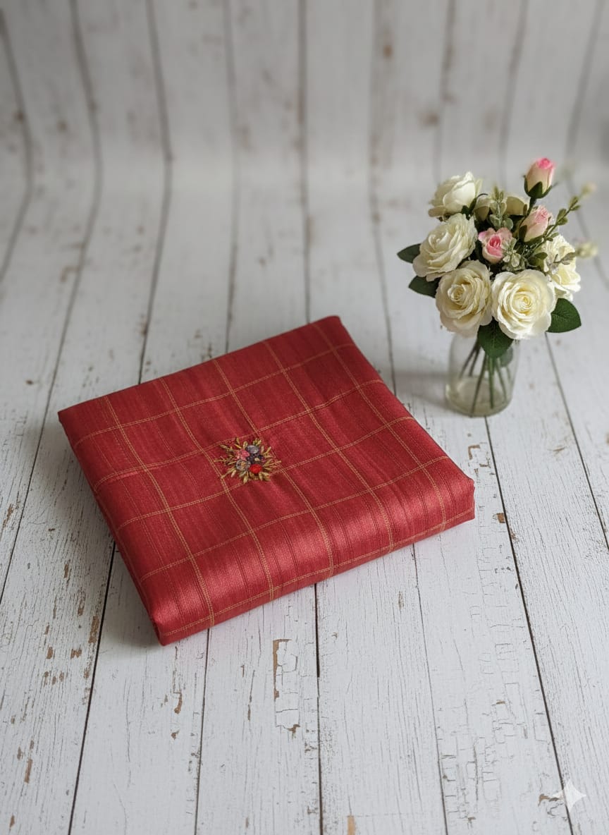 • Body Design: Subtle checked pattern with scattered floral embroidery